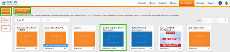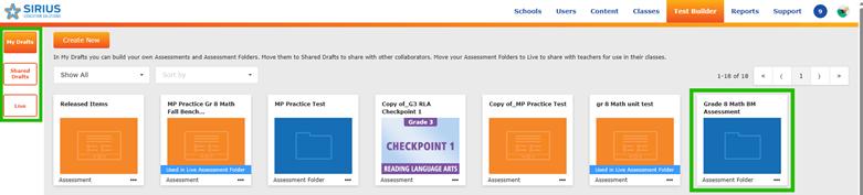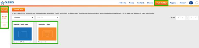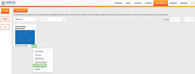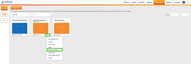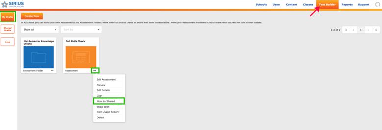 the screen. Your modified test can now be moved to Shared Drafts for collaboration, or it can be published by
