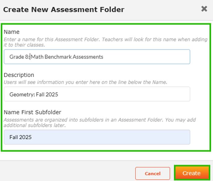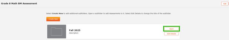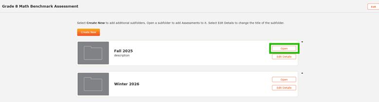 assessment folder you’d like to store the assessment in. Click Open on the subfolder where you