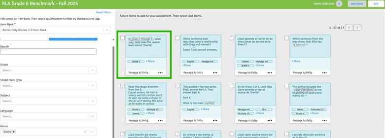 If you have purchased the STAAR Formative Assessment Bank (SFAB),