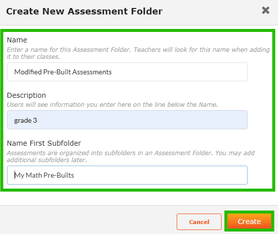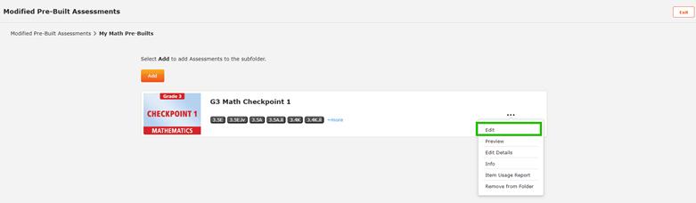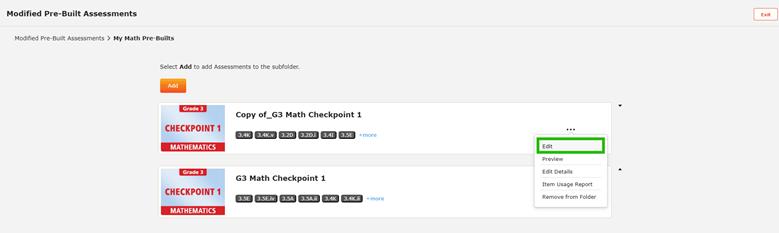 folder with a term like “Modified Pre-Built Assessments” along with your