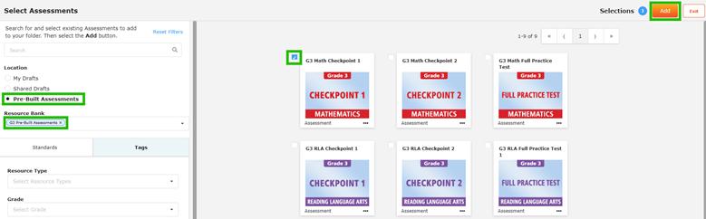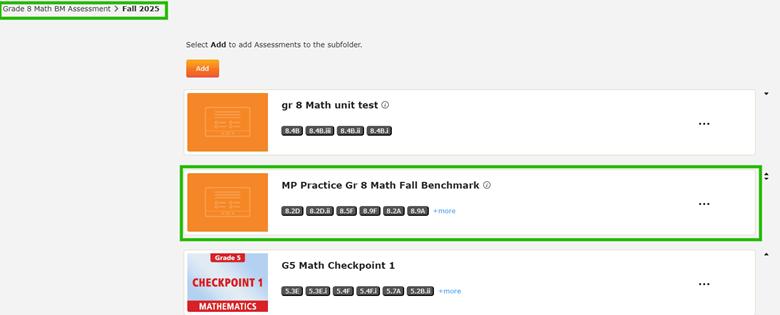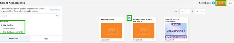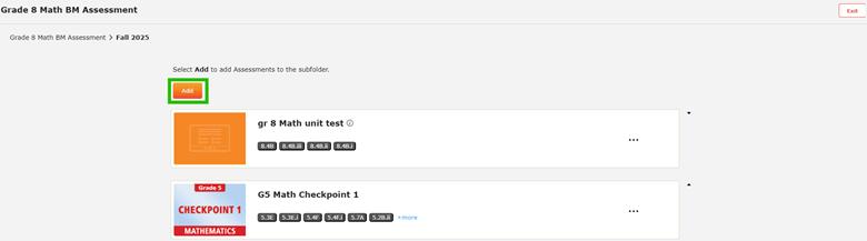 assessment(s) you’d like to modify. Then click the Add button in the upper right of the screen.