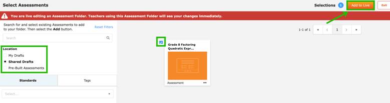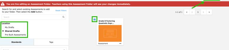 next to the assessment(s) you’d like to add to the subfolder. Then click