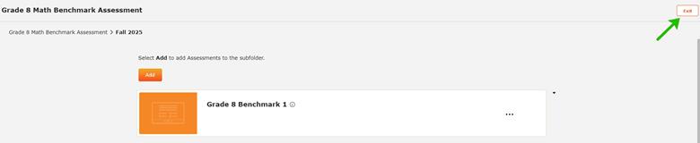 When you are done making modifications to the assessment, click Exit in the upper right corner of