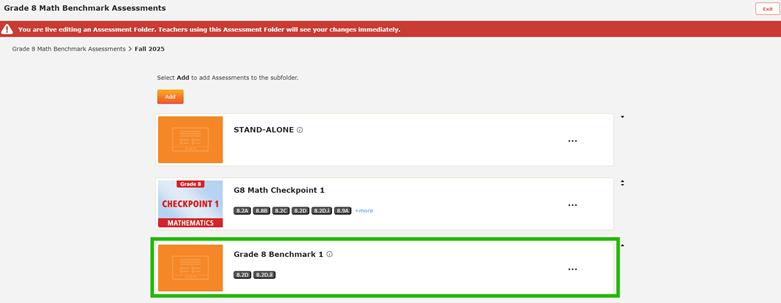 In the subfolder, click on the ellipsis (...) on the assessment’s