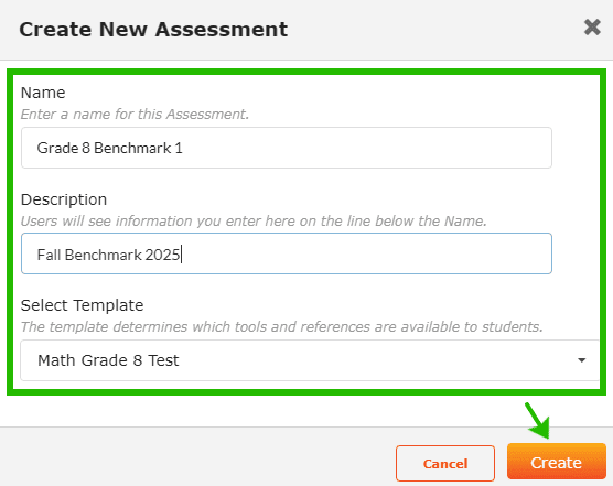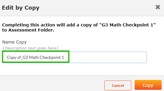 In the Edit by Copy window, enter a name for the assessment in the Name Copy field. Then click the orange Copy button.