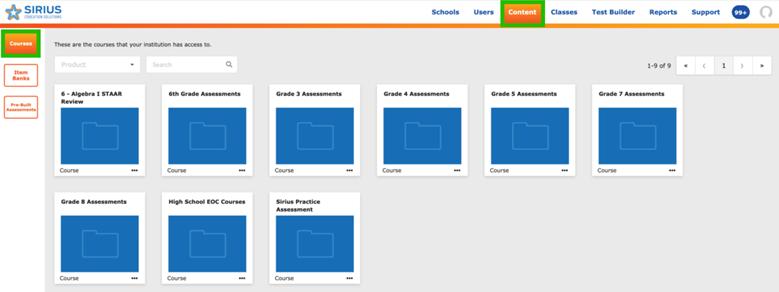 dashboard defaults to the Courses section of the tab, which includes purchased Sirius Online courses as well as any “live” assessment folders