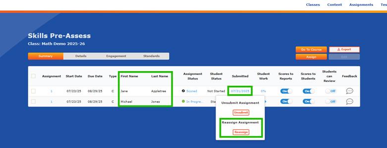 - This will reveal the Reassign button for that individual student.