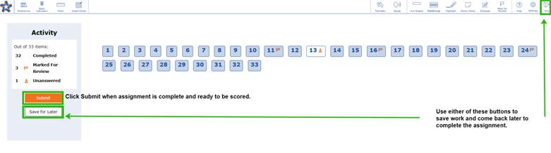 To ensure a smooth experience on Sirius Online, students should either Submit their work for teacher review or Save for Later before ending their