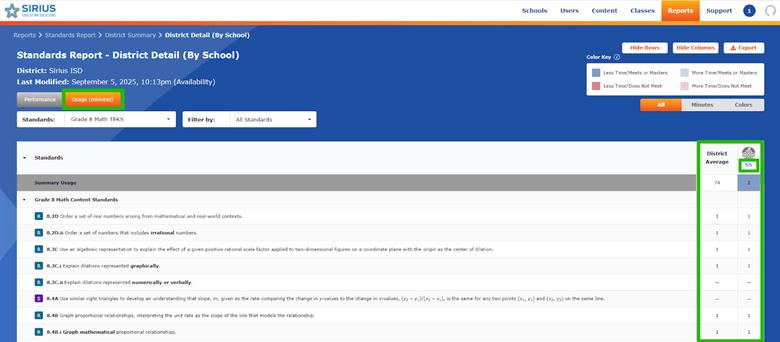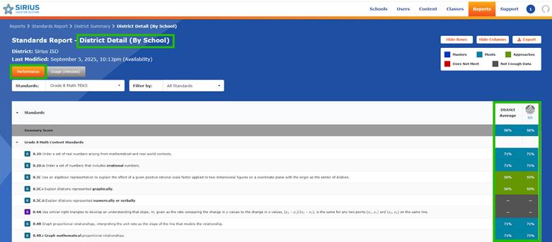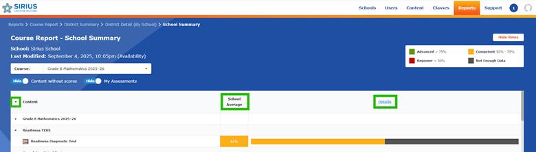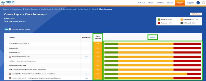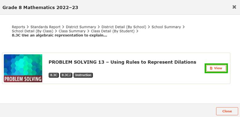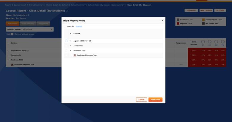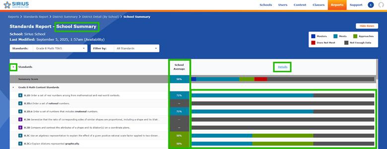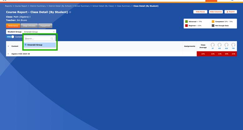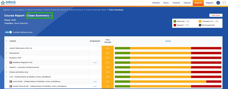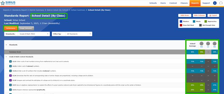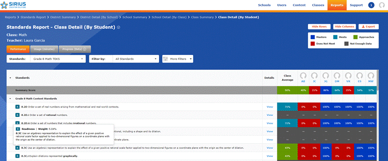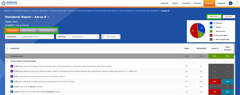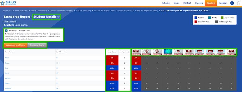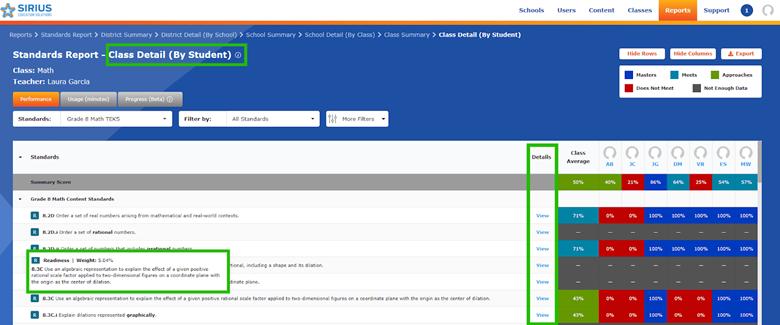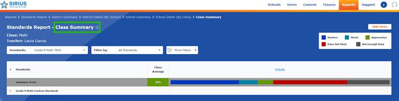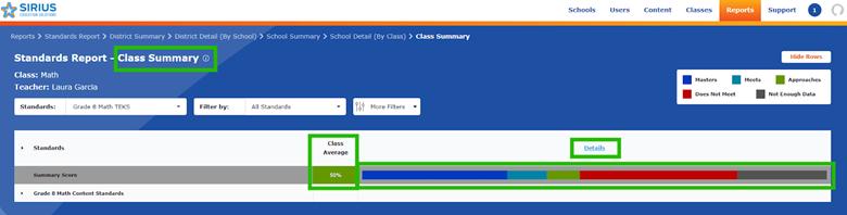 navigating to a Class Detail (By Student) report, see the section Standards Reports.