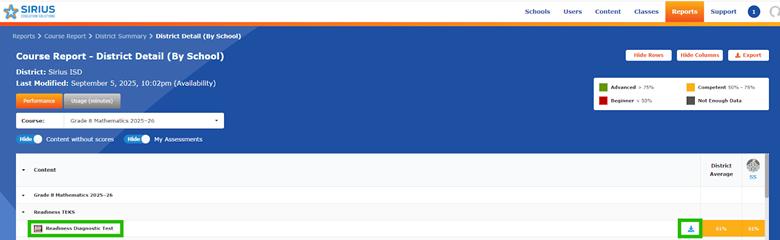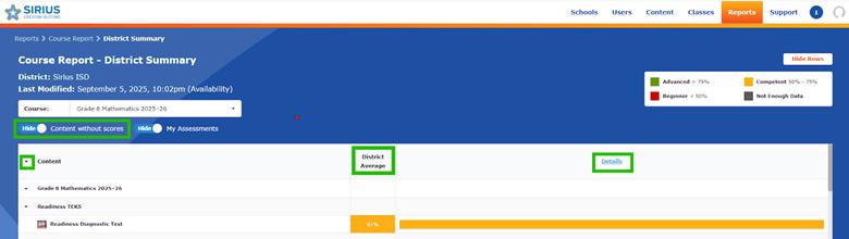 and each student’s average score on those assignments. You can view results by Assignment Level Scores or Item Level Scores.
